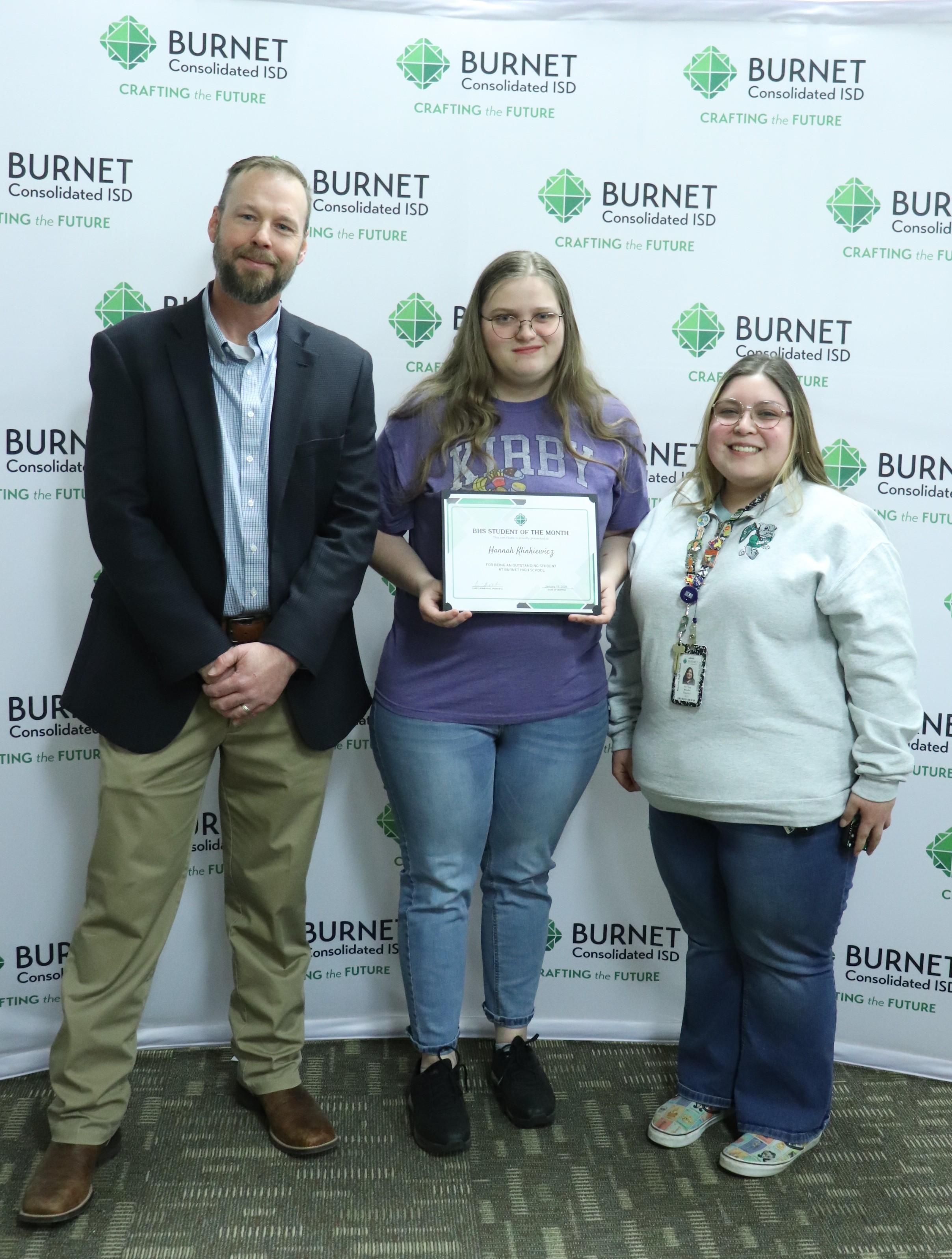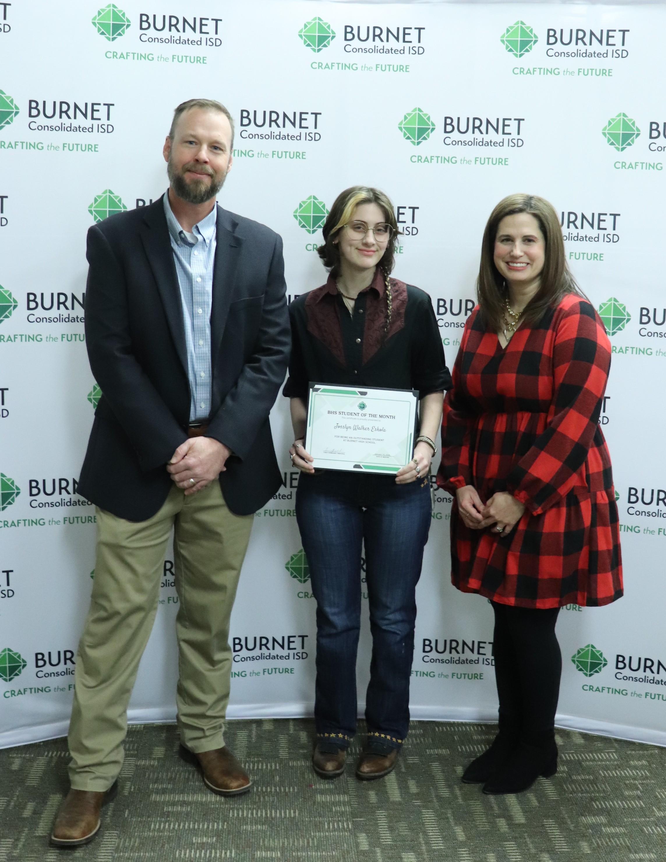 BHS Students of the Month: Lilian Garza, Hannah Klinkiewicz, and Josslyn Walker Eskola.